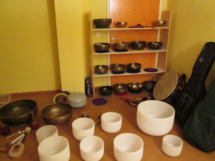 Prana work, Mantras & vedische Feuer, Kinesiologie, Klang- & Frequenzarbeit mit der Schumannfrequenz, dem Biotrohn und anderen gesundheitsfördernden Frequenzen, sowohl auch klassische Klangschalenmassagen im Rahmen der Klangtherapie mit Planetenschalen nach Marcel Kocaman.