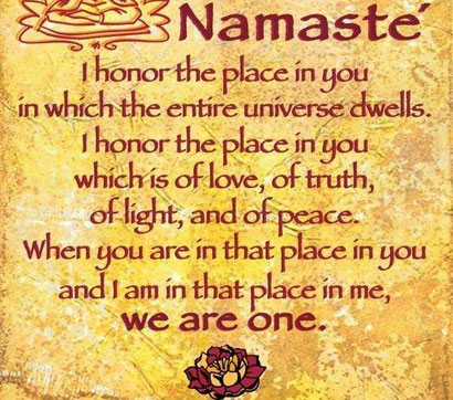 Einer Überlieferung zufolge soll Mahatma Gandhi auf eine Nachfrage von Albert Einstein, was er denn mit dem bei ihm beobachteten Gruß Namasté ausdrücken wolle, dem Wissenschaftler Folgendes geantwortet haben: „Ich ehre den Platz in dir, in dem das gesamte Universum residiert. Ich ehre den Platz des Lichts, der Liebe, der Wahrheit, des Friedens und der Weisheit in dir. Ich ehre den Platz in dir, wo, wenn du dort bist und auch ich dort bin, wir beide nur noch eins sind.“